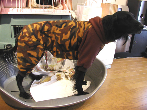 キャノも去年の冬からは室内でもこれを着せて過ごさせました。