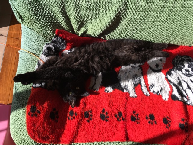 我が家のリビングは日当たりがよく、冬になると天気の良い日はキャリーケージに入れられて、終日日の当たる場所で日向ぼっこしています。