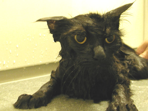 シャンプーすると、若干長毛のハンサムボーイは、すっかりグレムリンに変貌します。