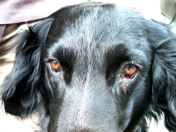 よくよく見ると、ワンコの両目の下が少し赤茶けて毛が無くなっていました。