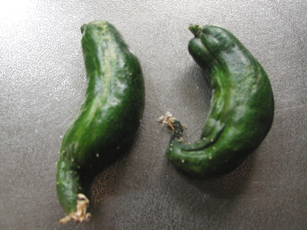 手前は普通のキュウリ、奥の2本は気になっているゴツゴツきゅうり