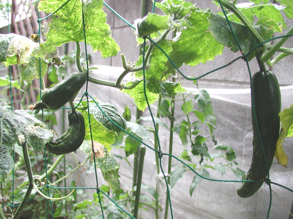 キュウリ苗4本のうち、比較的成長のよい1本が、何度か実を付けるのですが、