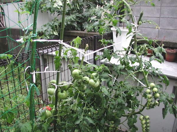 トマトは、脇芽を見つけるたびにすぐに芽かきをしていたので、