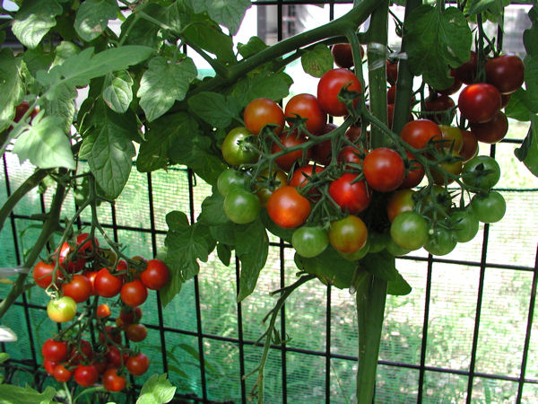 我が家のすずなりのミニトマトたちが、だいぶ赤くなってきました。