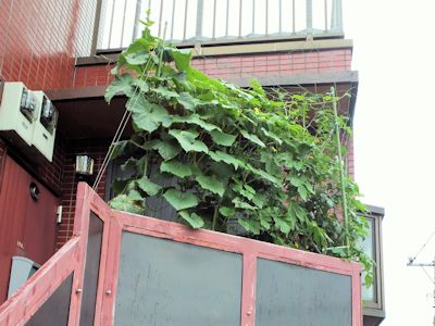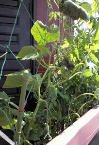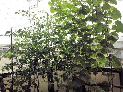 全ての苗が、余裕で背丈を超えてしまい、玄関脇はプチジャングルです。