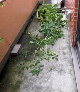 2014年7月、台風で倒れたトマト(実も沢山落ちました)