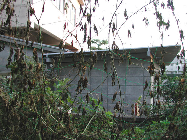 一番上(2階)と、一番下(ブロック塀)の葉は一応健在。