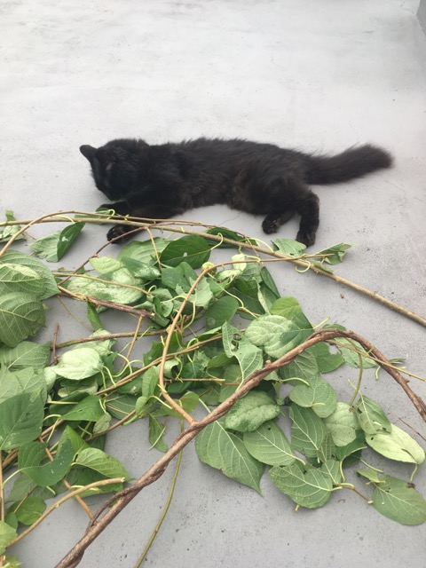 普段はビビッてキョロキョロしてしまう屋上ですが、なんと落ち着いた様子でクンクンしているではありませんか!そしてその後は、マタタビの脇にゴロンしてしまいました。