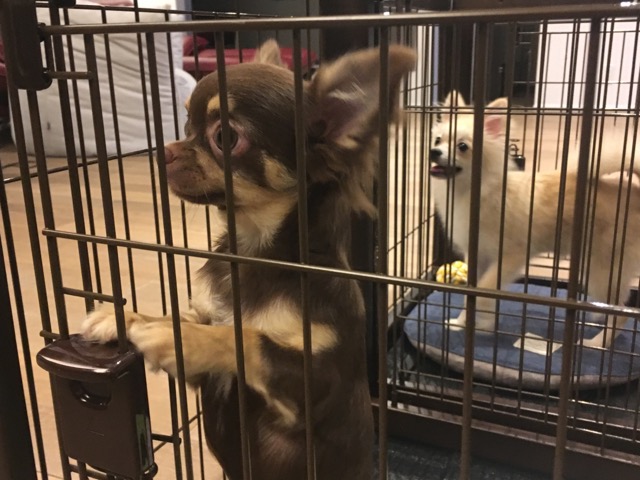 いつも、行きは絶対に伏せた姿勢でうつむき、ケージを覗くと目が合うのですが・・・・全然起きないまま現地に到着!