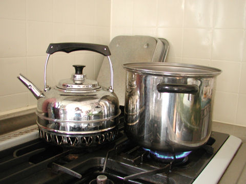 鍋のすぐ横にケトルを置いておくと、中の水がいつの間にか勝手にお湯になっていました。