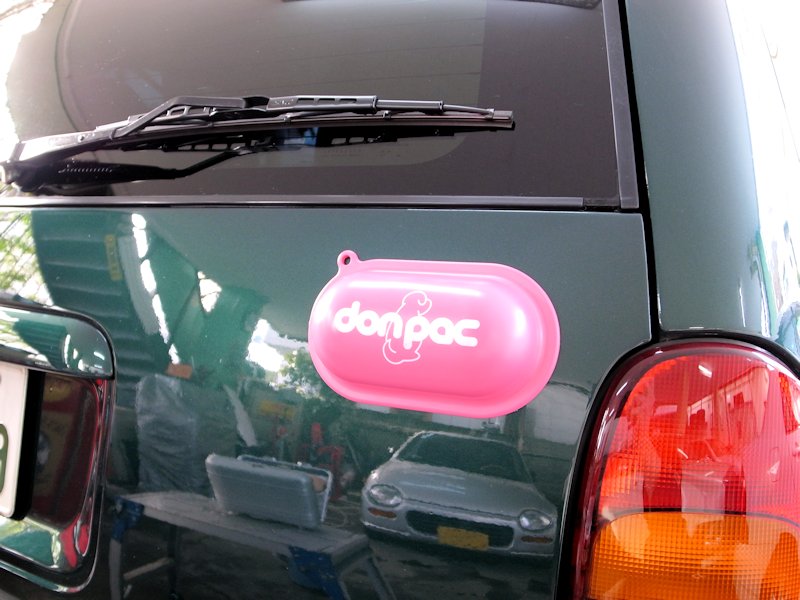 今まで付けていた革の首輪とともに袋に入れて携帯していますが、