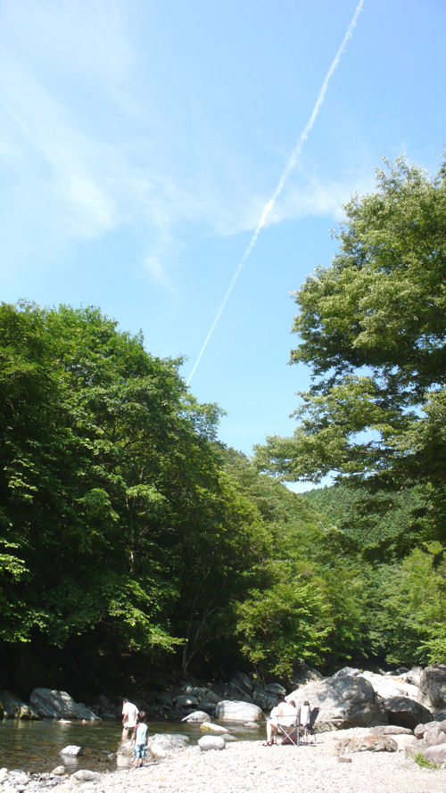 次に、その川と自然を背景に家族3人が写った写真・・・・