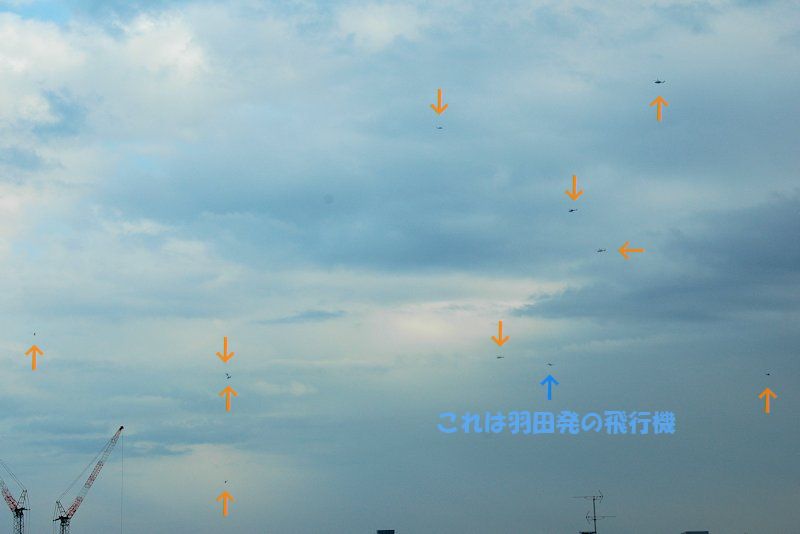 (羽田方面のため、写真には飛行機も1機混ざっています
