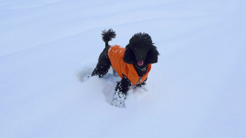 雪深い場所で脚が雪玉まみれになってもひるむことなく歩けるようになり、