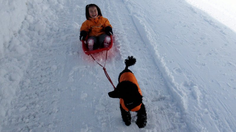 そして、上り坂の帰路では、彼女がスタート地点までそりを運んでくれていました。