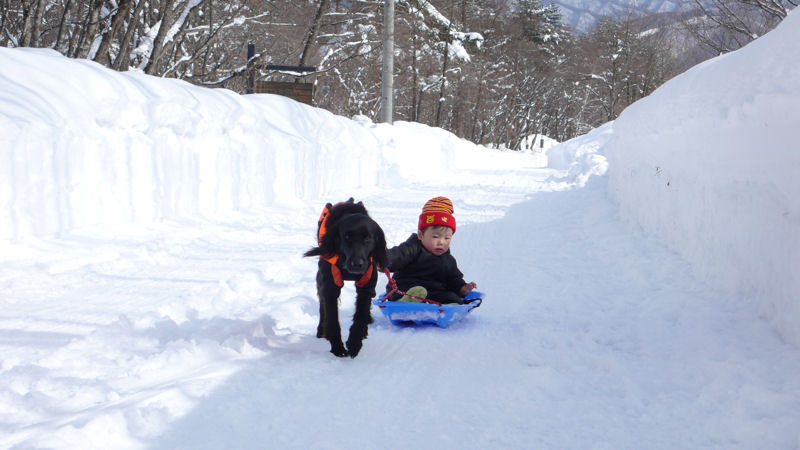 今年は全く問題なかったので、試しにそりに繋いでみました。