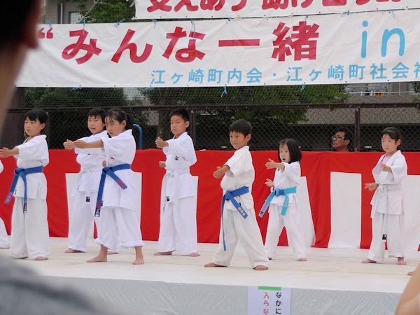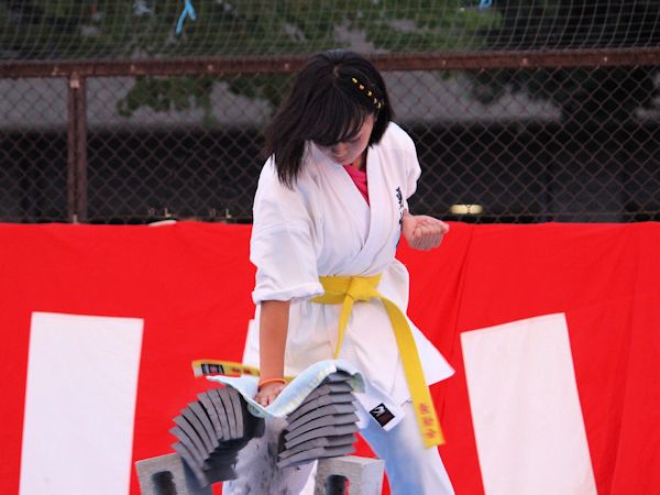 入会から2か月後の一昨年の演武では、板割りの際、すでに割れているものを用意し、