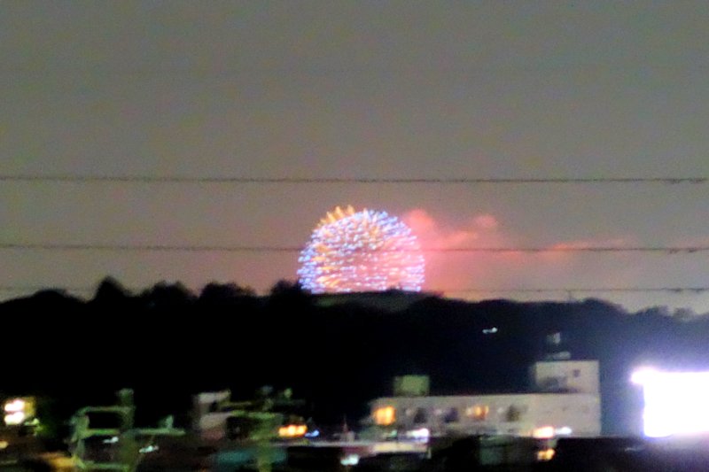 遠い小山の上から、わずかに顔を出す花火を確認することができました。