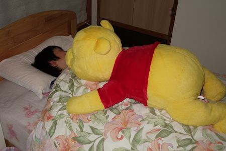 その中でおこなわれた抽選会で、なんと!プーさんの大きな抱き枕が当たっちゃいました。